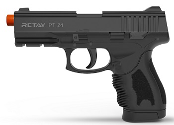 Our New Retay PT24 Blank-Gun has beautifully detailed design and is built with exemplary construction to insure proficient operation. Details; Caliber: 9 mm P.A.K, Magazine Capacity: 14+1 in the chamber, Safety: Firing Pen Safety, Length: 7.08", Height: 5.35", Weight: 1.91 lbs, Trigger Mechanism: Single action, System: Semi automatic.